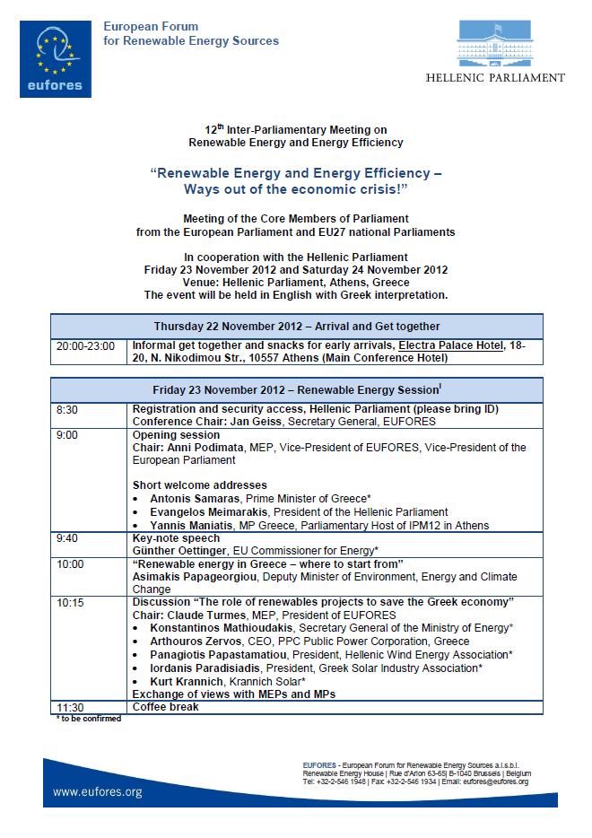 EUFORES 12th Inter-Parliamentary Meeting on Renewable Energy and Energy Efficiency