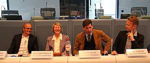 The presentations were followed by a panel discussion between Marie Donnelly (Director DG Energy, European Commission), Claude Turmes (MEP, President of EUFORES), ian Duncan (MEP), and Jeppe Kofod (MEP). The debate was moderated by the journalist Sinja van Renssen.