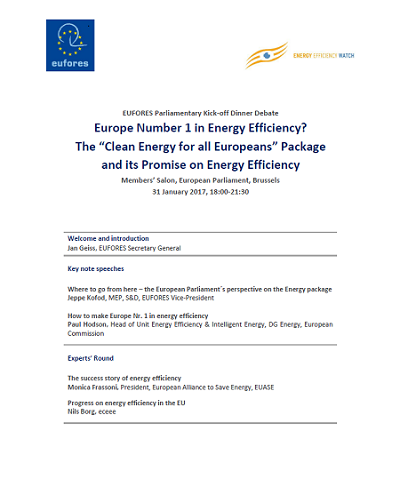 On the 31st January EUFORES organised a Kick-off dinner debate to discuss the outline of the “Clean Energy for all Europeans” package and the upcoming negotiations and views of involved members of the European Parliament. After the introductory speech of Jeppe Kofod (MEP, S&D, EUFORES Vice-President), presentations followed.