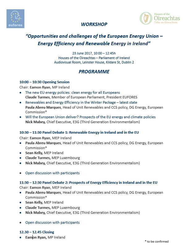 In cooperation with the Committee on Communications, Climate Action and Environment of the Irish Parliament, EUFORES organised a national parliamentary workshop to discuss renewable energy and energy efficiency policies in the Irish Parliament.
