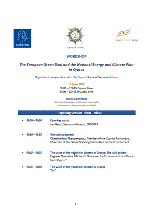 The European Forum for Renewable Energy Sources - EUFORES - organized a national parliamentary online workshop on energy efficiency and renewable energy, in cooperation with the Cypriot Parliament, and Member of Parliament Mr. Charalambos Theopemptou, Chairman of the House Standing Committee on Environment.